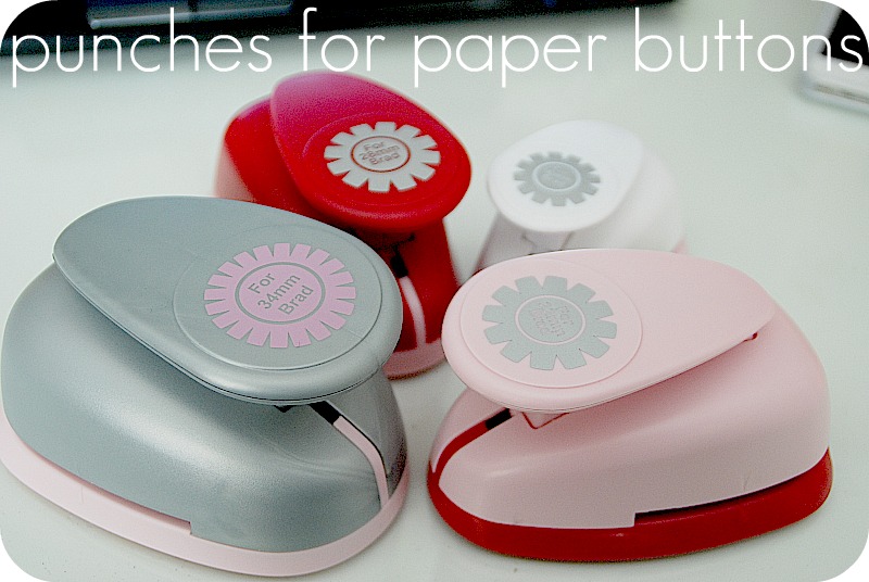 Another thing I love about this iTop system is the punches that Imaginisce sells. They make punching out the paper so easy. The punches have little notched sides that make making the the button tops covered with paper fit perfectly. There are punches that coordinate with all of the sizes of the cups.