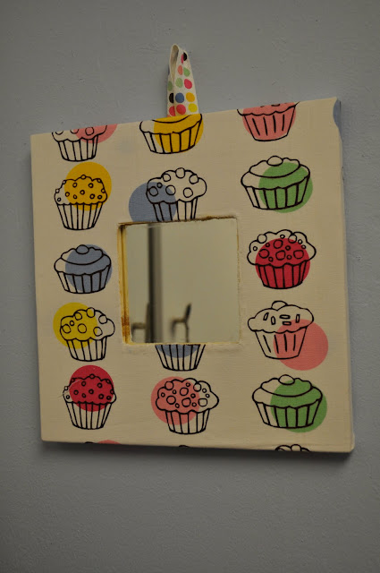 You know I love cupcakes! Cupcake mirror made with a Dishtowel! @ Martha Shmartha