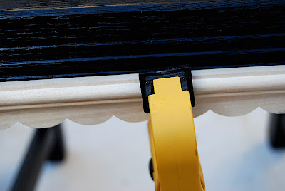 I also decided to add some scallop molding to take a little of the gothic element out of the chair and add a little more cottage-y feel. I used Gorilla’s Wood Glue and then clamped it until the glue dried.