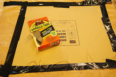 Then I took some burlap material and cut out a piece of material that was the same size as the picture plus 4 inches on each side.