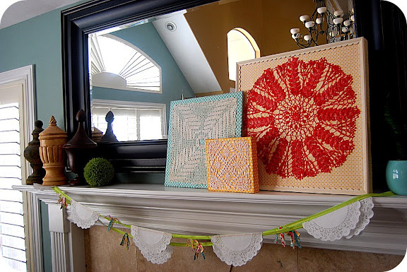 I am in LOVE with those doilys you did! They really make the mantel look FAB…evern more fab than it already was!