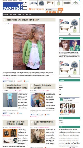 AND, check it out for great ideas. We feature refashions for men, women, kids, shoes and accessories. We are sharing easy projects anyone can make to upcycle or recycle items into fashionable style statements. It’s going to be so fun!!