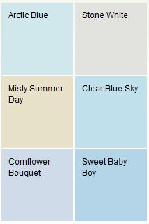 I love the misty summer day and then I think using either sweet baby boy or Clear blue sky as an accent color. I really like the green, but I can see what you mean about it not flowing with the kitchen.