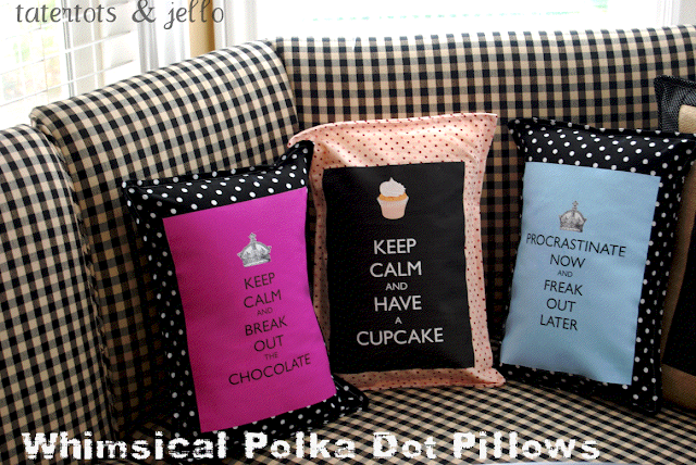 Hello sweet Jen – love all your polka dot yummy-ness! I'm a polka dot lover too. I especially like the way your pillows turned out! The chocolate one is calling my name! So fabulous.