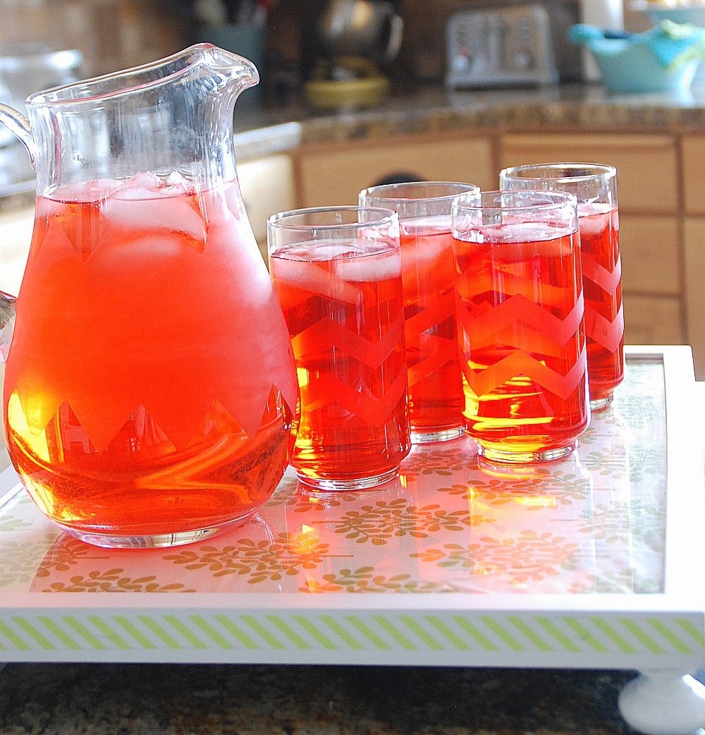 Now the pitcher is a different story. I ended up only being able to use two of the stripes on the pitcher because the way the pitcher is shaped made it impossible to match up the zig zags. But if you bought a straight pitcher shaped more like the glasses, you can do the same thing that you did with the glasses.
