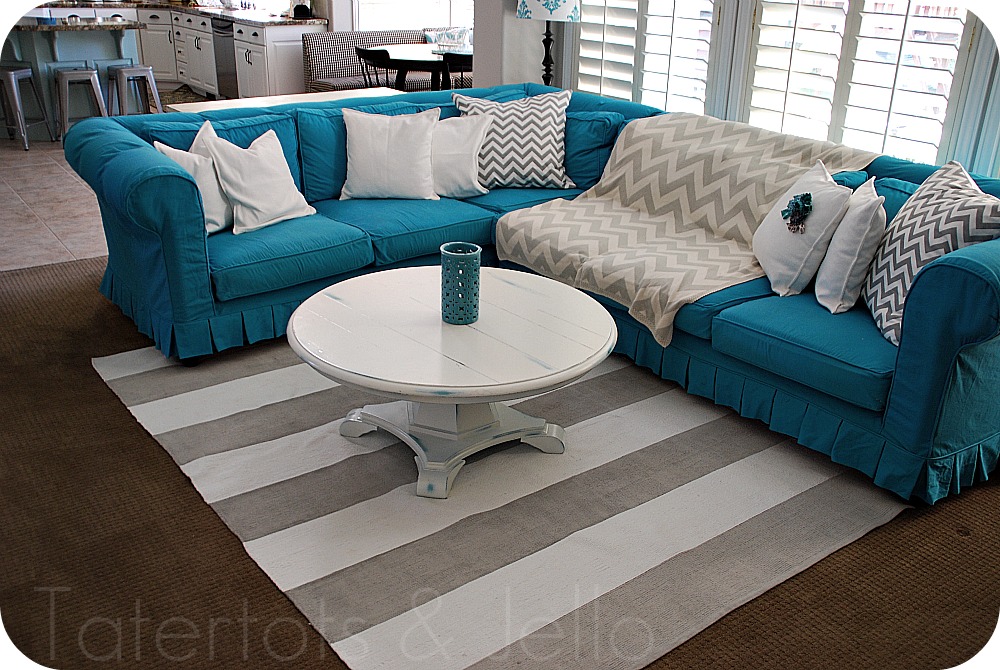 Can you please tell me where you got your turq slip cover. I have a sectional similar and didn’t think it was possible to slip cover. Yours looks great–can’t even tell it’s slip-covered. We luv it but we went safe with a brown and would luv to go lighter since we have stained concrete floors…