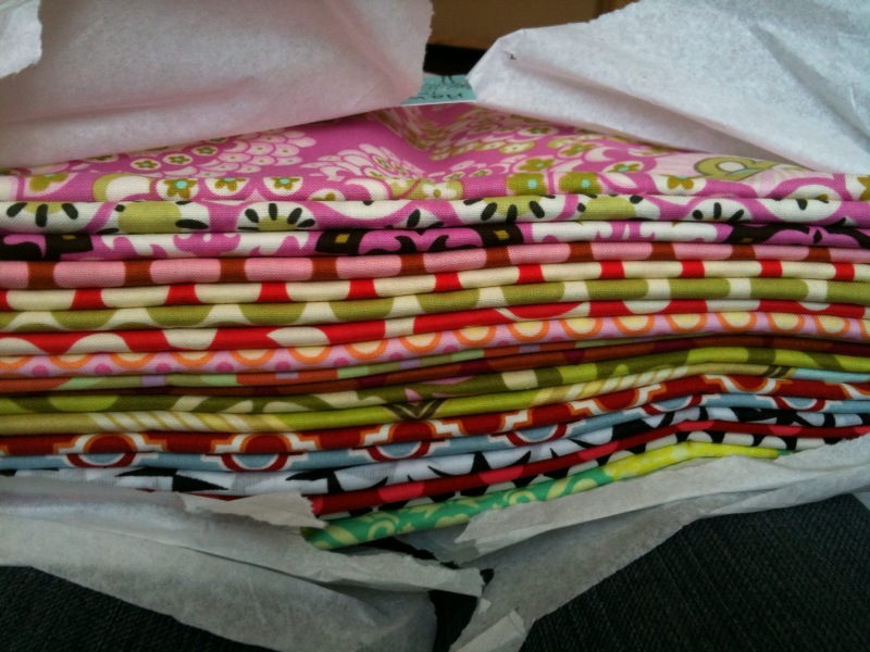 I got a wonderful tip from Lindsey @ Pleated Poppy last week — she clued me in to a great place to get beautiful fabric, Hawthorne Threads. They have a great selection of yummy fabric and it’s really easy to order. I was thrilled when a package came for me TWO days after I ordered!