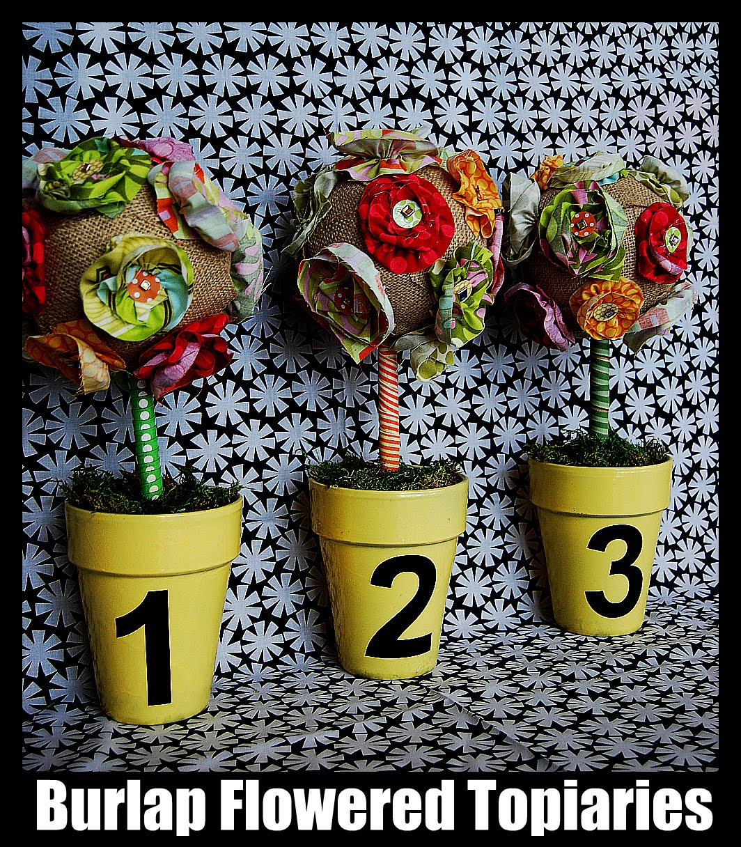 You've got your trademark burlap and colorful flowers thing down girl! I love these. So when will they be for sale in your etsy shop??? 😉