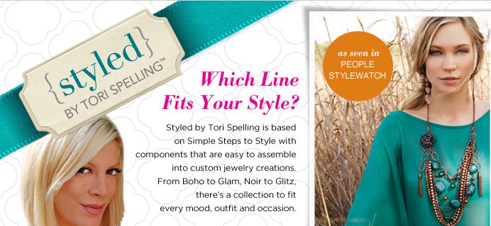 In January I was able to go to the CHA (Craft and Hobby Association) show and see some of the newest craft products and trends for 2012. One of the highlights was meeting Tori Spelling and learning about her new {styled} by Tori Spelling line of DIY custom jewelry creations.