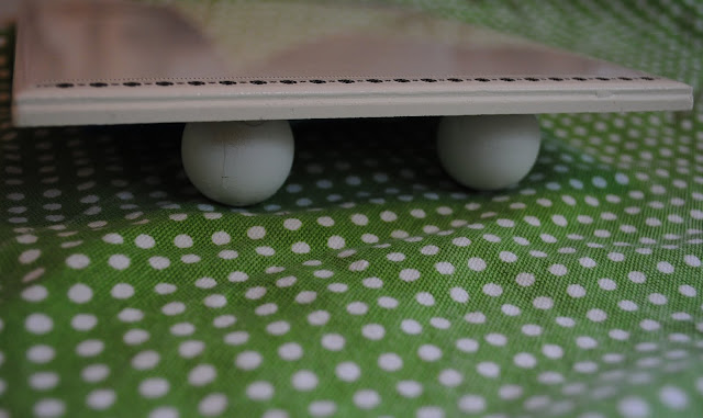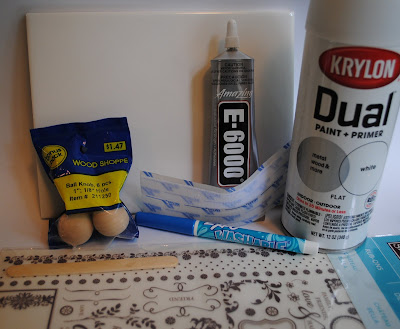 5. Apply E-6000 to the flat side of your knobs (after you’ve spray painted them white and they are dry) 6. Firmly press the knobs onto the back of the tile 7. Cut a small strip of velcro and apply to the back of the tile. 8. Apply the other side of the velcro to the pen and secure it to the back of the tile. Now your memo/message board is inclined to make writing easier!