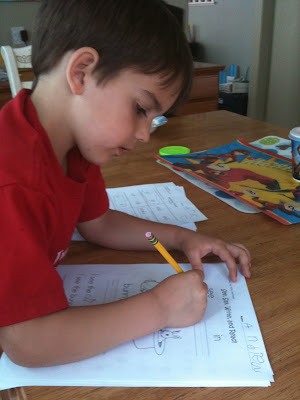 Before school gets out, I ask the kids what they would like to learn about. In the past we’ve done: circus, animals, artists, our country, and everything in between. I then plan activities, books, and worksheets around that theme. This year I made a simple printable and laminated it, added magnets on the back and stuck in on the fridge. Easy peasy.