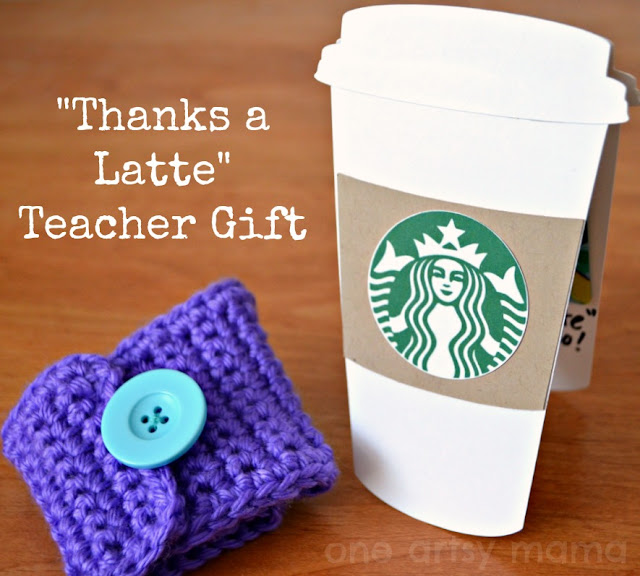 What does a teacher want? I polled the peanut gallery {ie: my One Artsy Mama Facebook community} and asked readers who are or have been teachers what their favorite gifts are to receive. Almost half of the those who commented said they love receiving gift cards, particularly to coffee shops, restaurants, and bookstores {and/or cash!}. About a quarter of those surveyed also talked about their fondness for handmade and/or personal gifts. Apparently, if you want to make a teacher really happy, give him or her a gift card to a favorite place, accompanied by something handmade. So, that’s just what I decided to do!