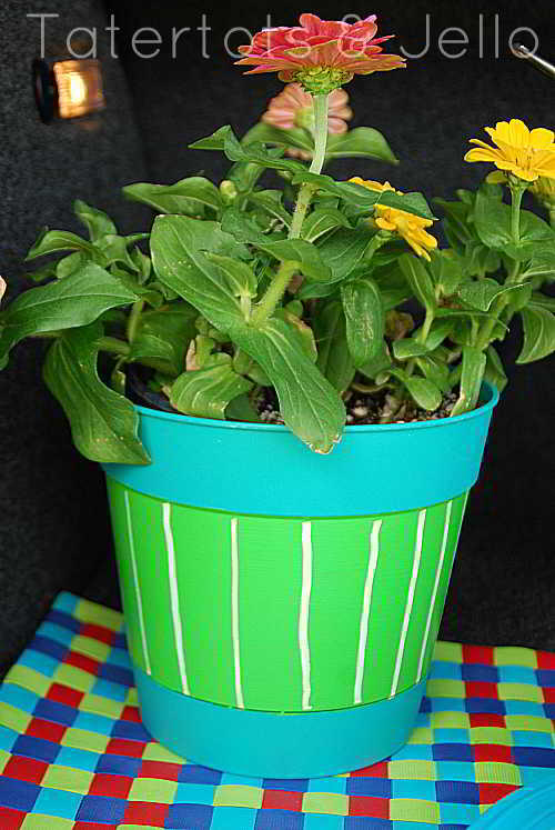 I also painted the middle of a plastic flower pot and some stripes for color. A fast way to add color to a party!