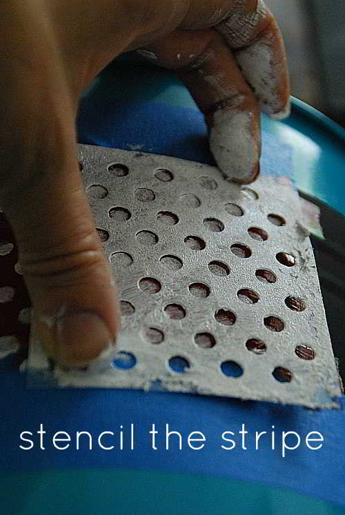 Once that paint was dried, I used the Plaid Polka Dot stencil to add polka dots in white to the border on each surface.
