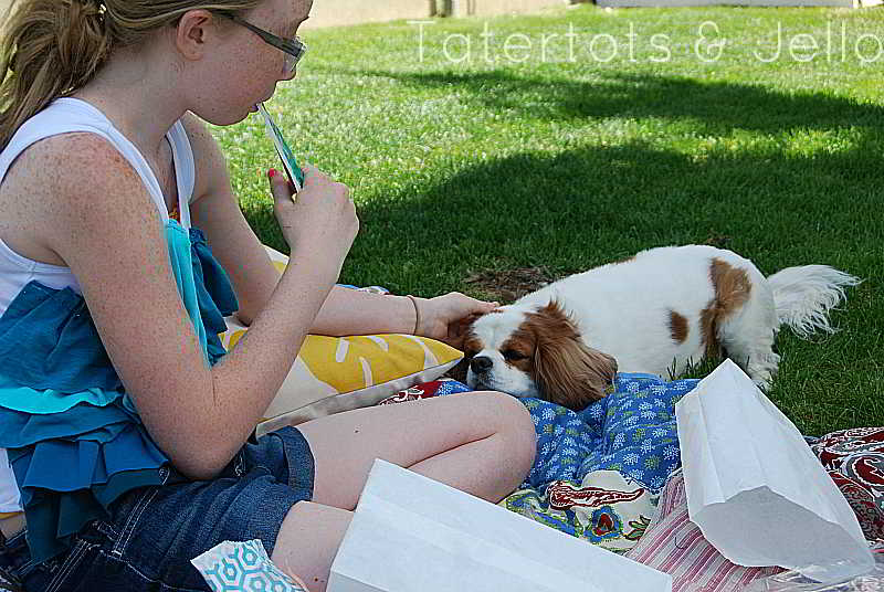 You have such a cutie pie assistant! 🙂 What a fun idea, Jen! You did a great job dressing everything up. 🙂