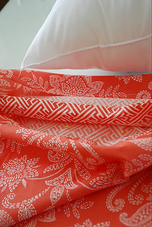The next thing you do is pin the fronts of the pillow cover together and sew down that seam.