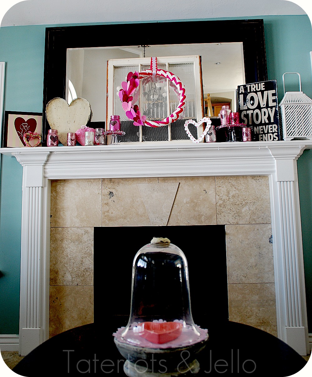 And such an inexpensive way to add some festivity to your mantel or it would be so pretty on a Valentine’s Day Dinner Table!!