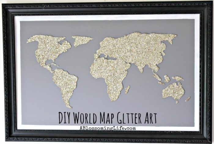 DIY World Map Glitter Art @ A Blossoming Life