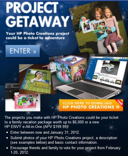 (you can win a $199 HP All-in-One Printer PLUS be entered to win a $6,000 family vacation!)