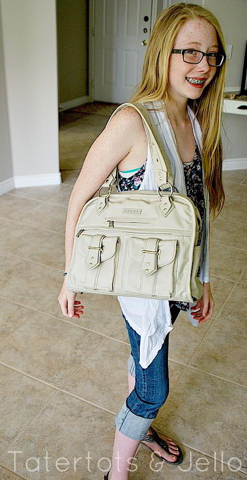 I love the Riley bag in Pearl – the pink chevron on the inside is adorable! Also pretty sure I could get away with this as a diaper bag for my 2yo!